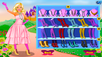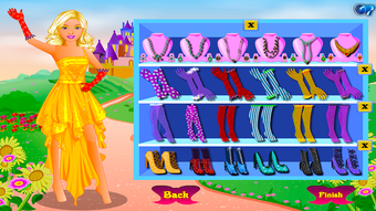 عند بدء اللعبة، سيُطلب منك جعل الأميرة تبدو رائعة. اختر نمطًا للمكياج وقصة شعر وفستانًا. بعد الانتهاء، سيُطلب منك اختيار الإكسسوارات، مثل التاج والعقد والخاتم والحزام. يمكنك أيضًا اختيار قصة شعر. بعد الانتهاء، سيُطلب منك الانتقال إلى المرحلة التالية.